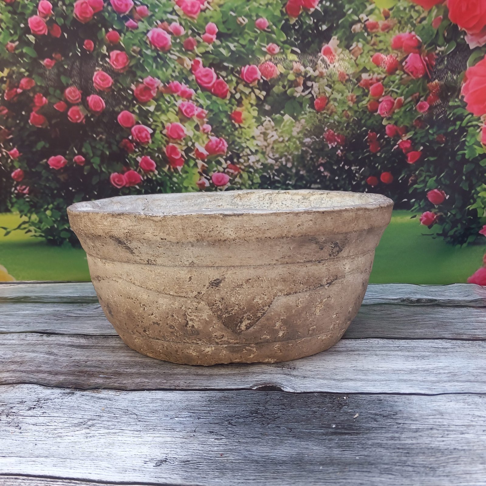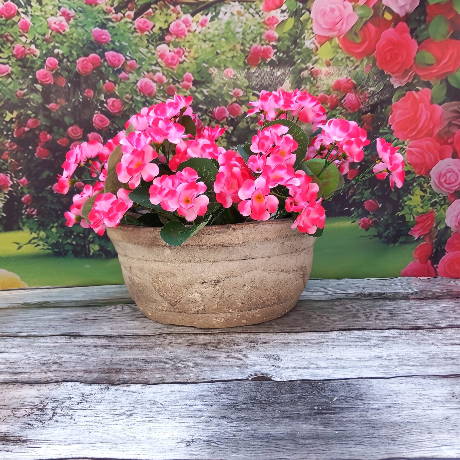 Sa forme et sa couleur pierre naturelle sont parfaites pour accueillir vos plantes fleuries avec élégance.