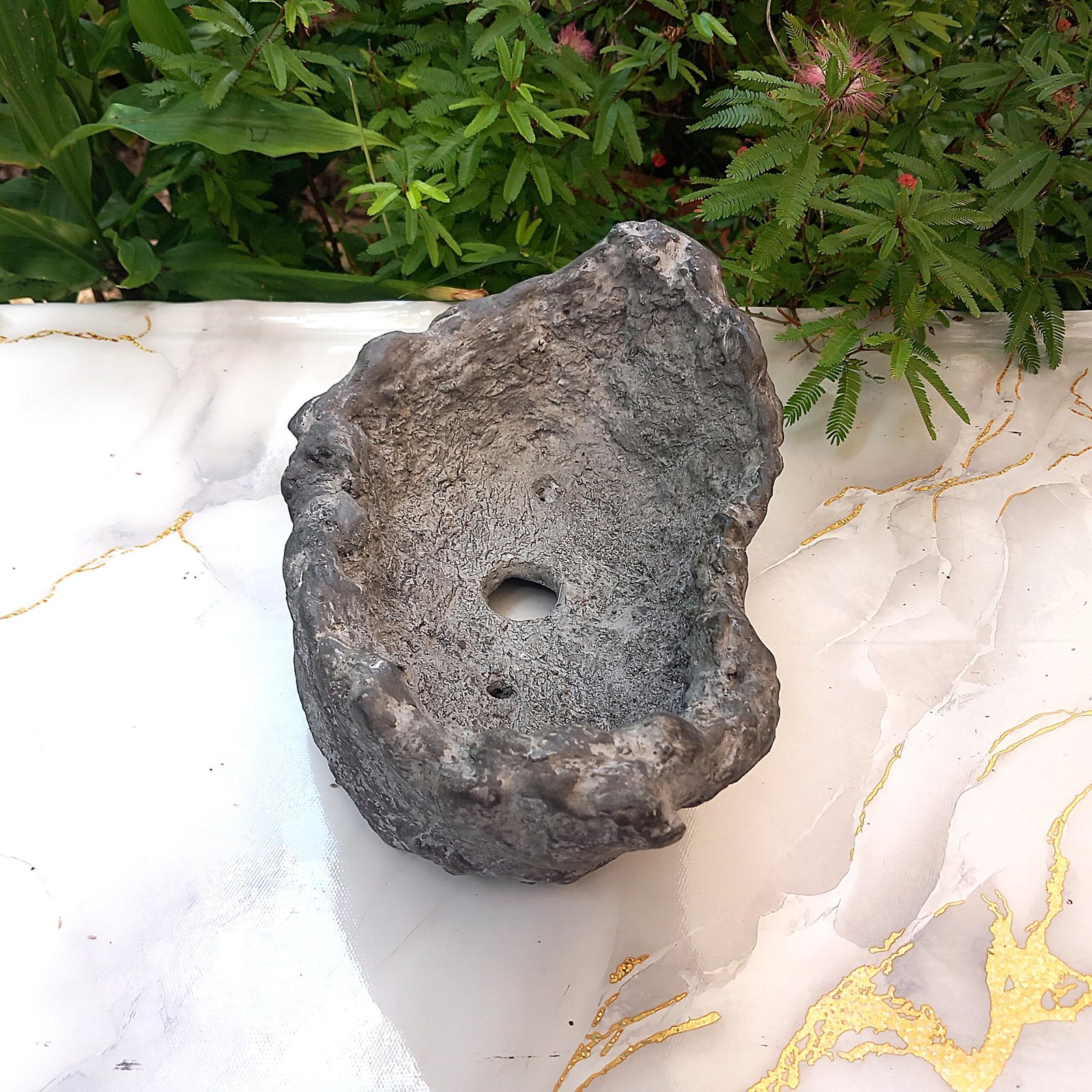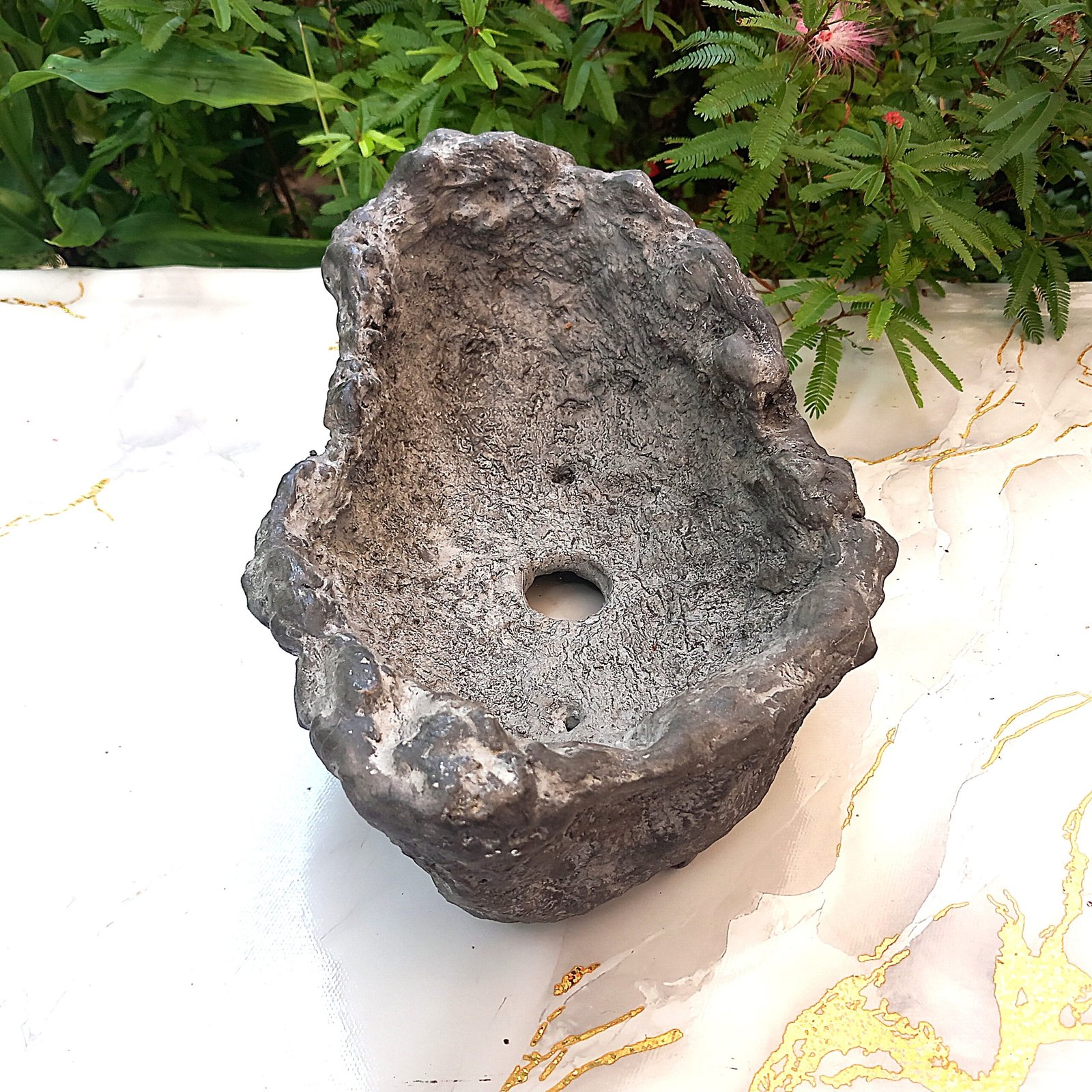 Sa forme allongée et irrégulière, ses couleurs de rocher , en font un contenant original et très naturel pour votre arbre.