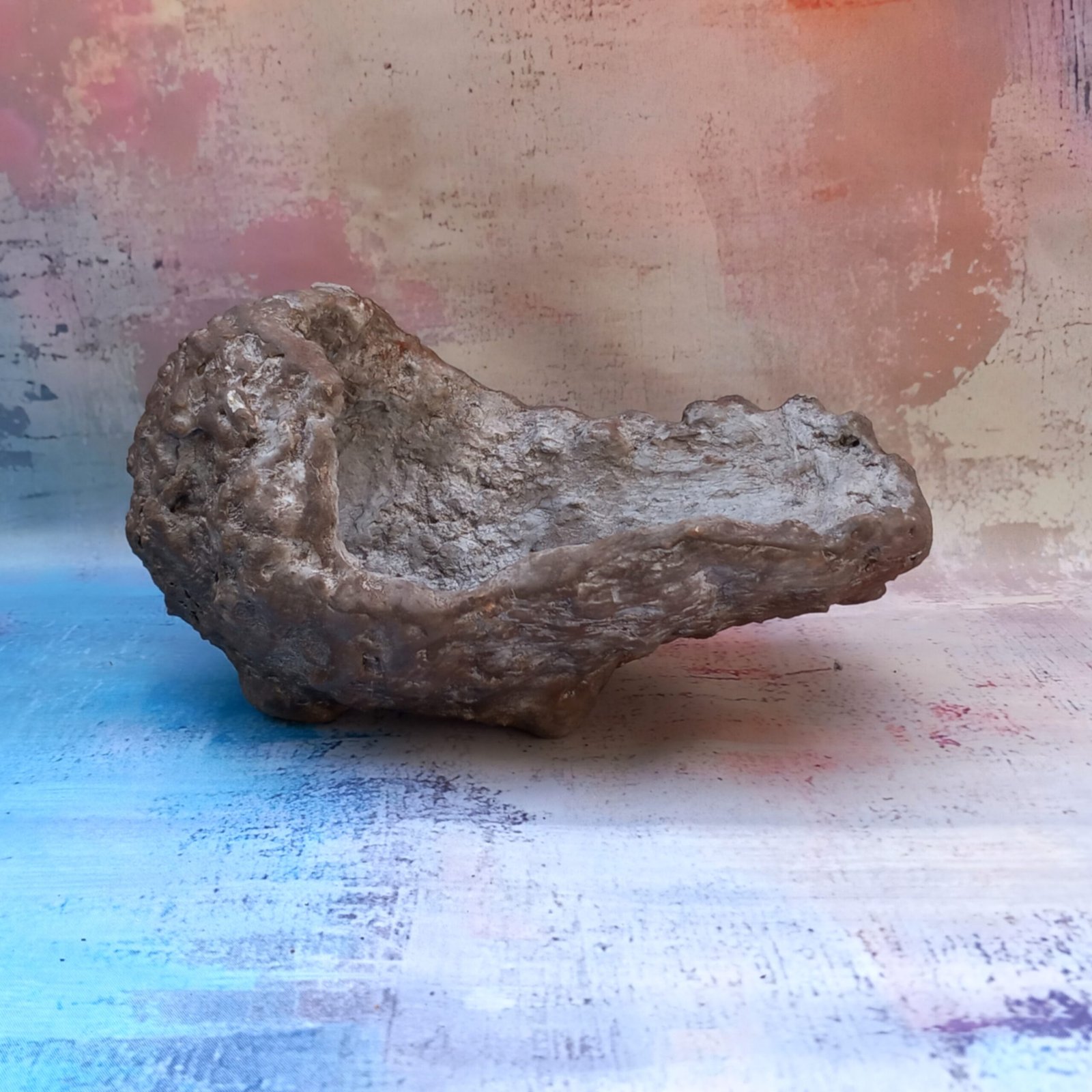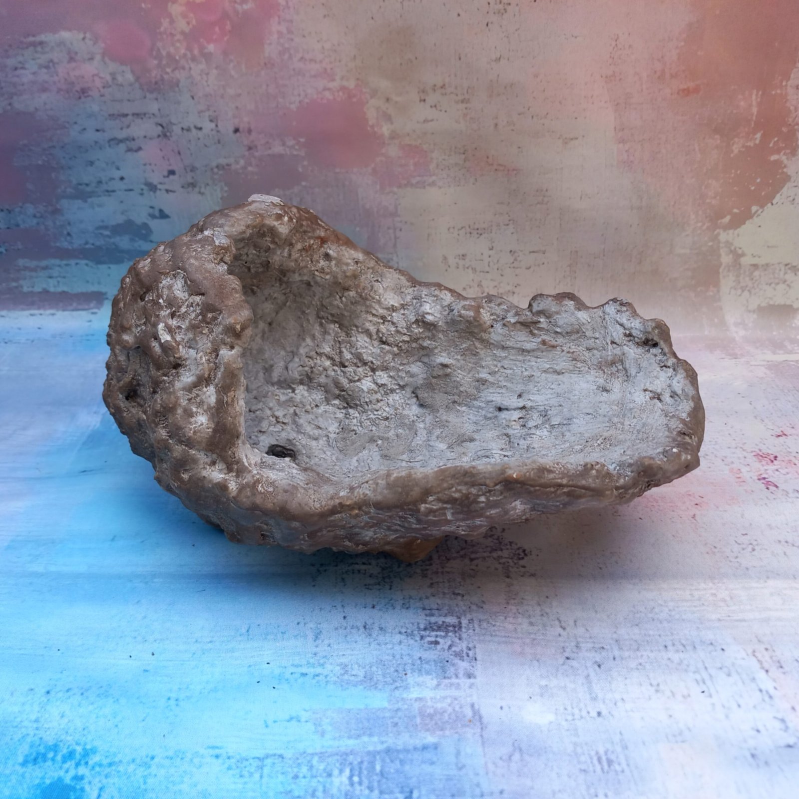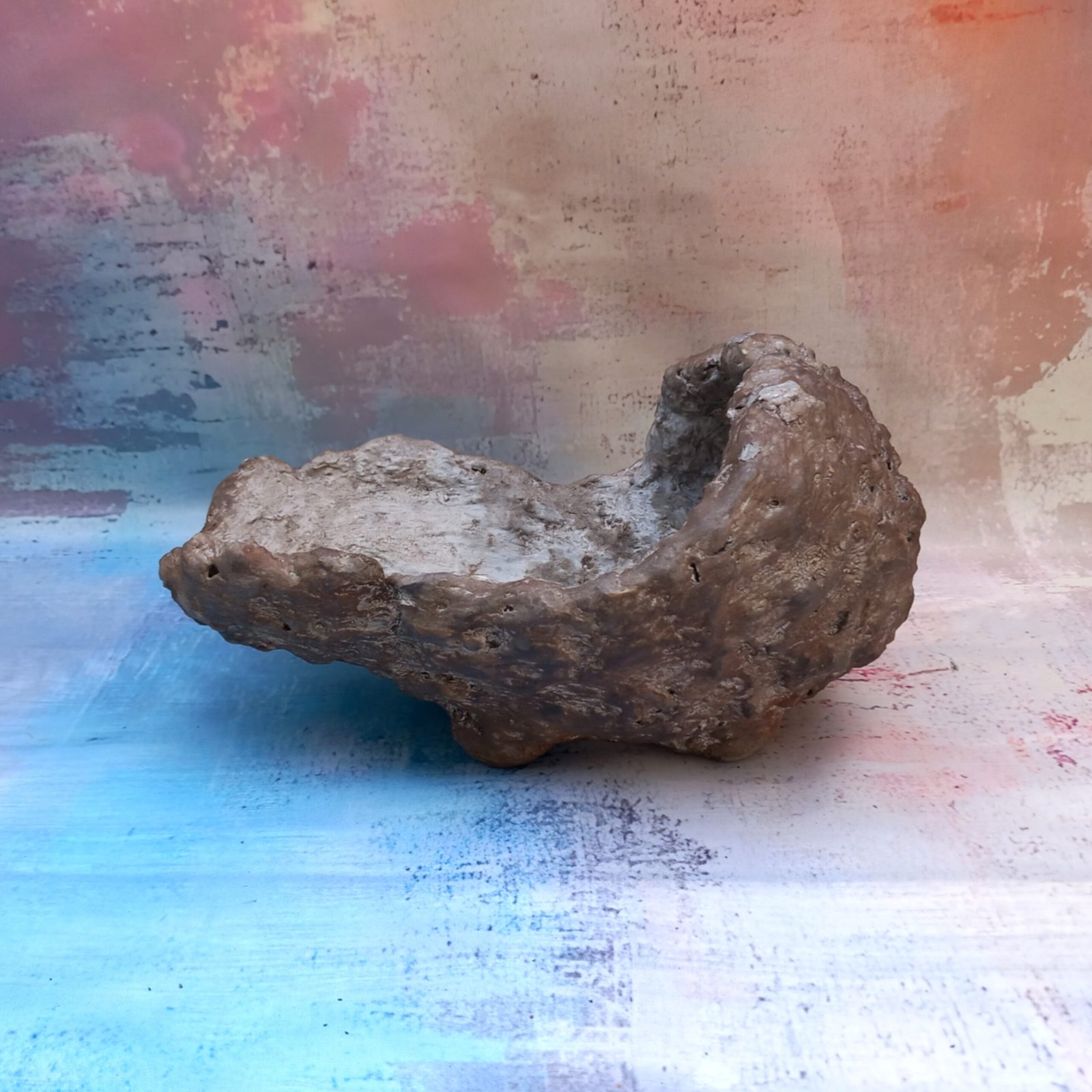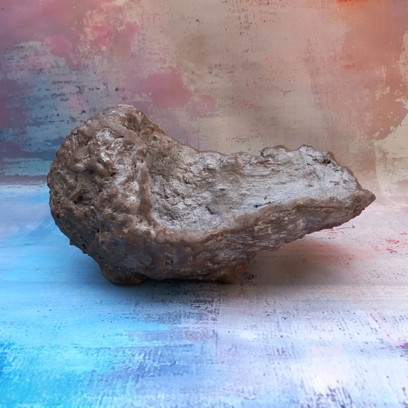 un pot artisanal pour Bonsaï , entièrement réalisé et peint à la main en béton fibré. Sa forme originale et son aspect de rocher en font un pot vraiment unique.