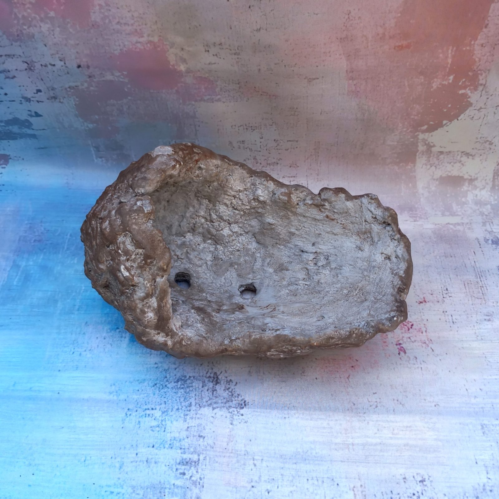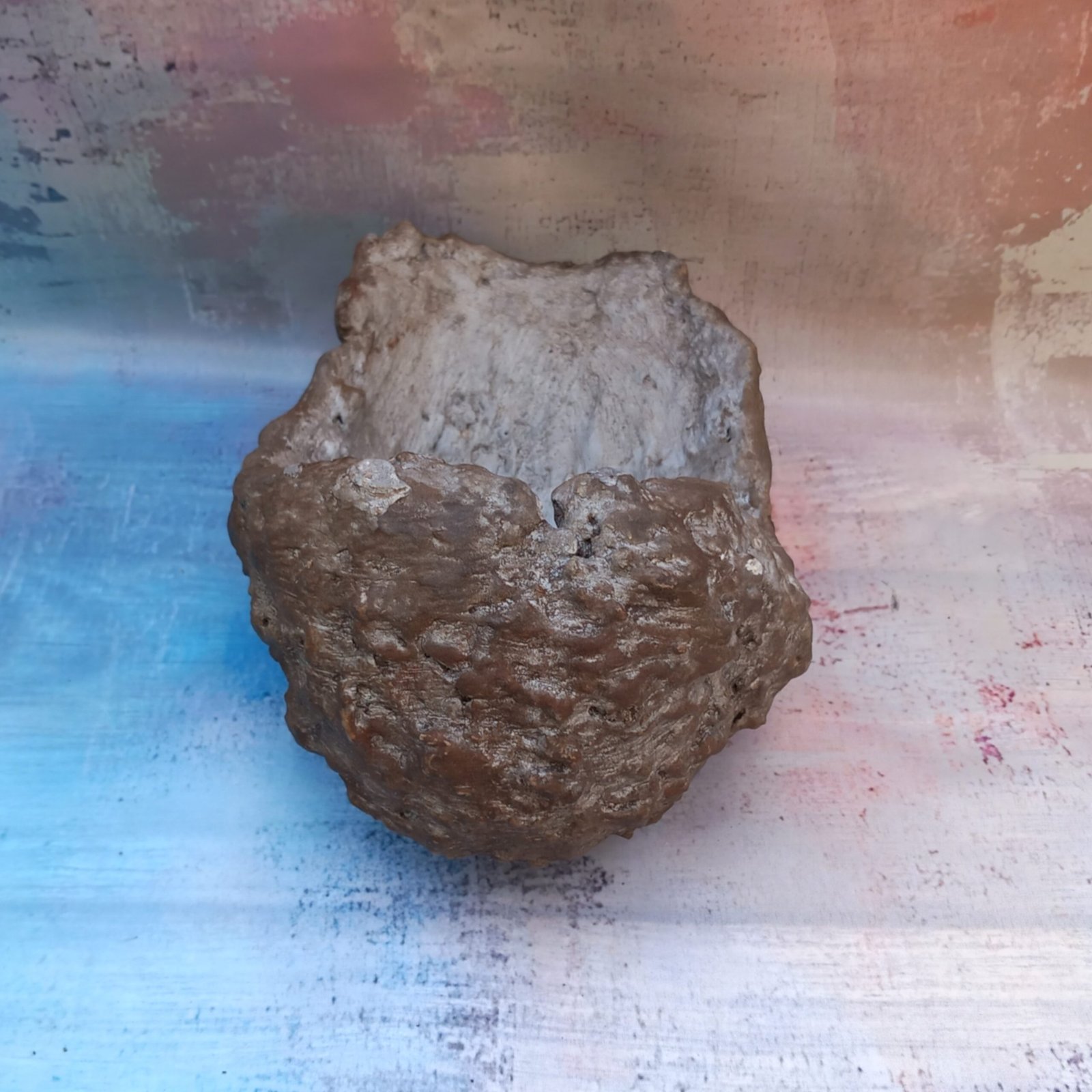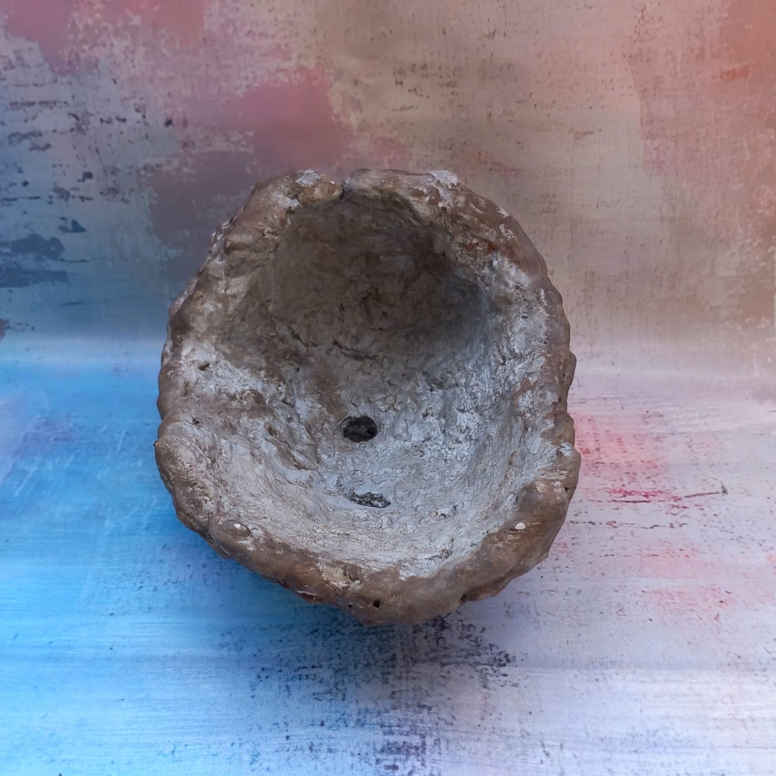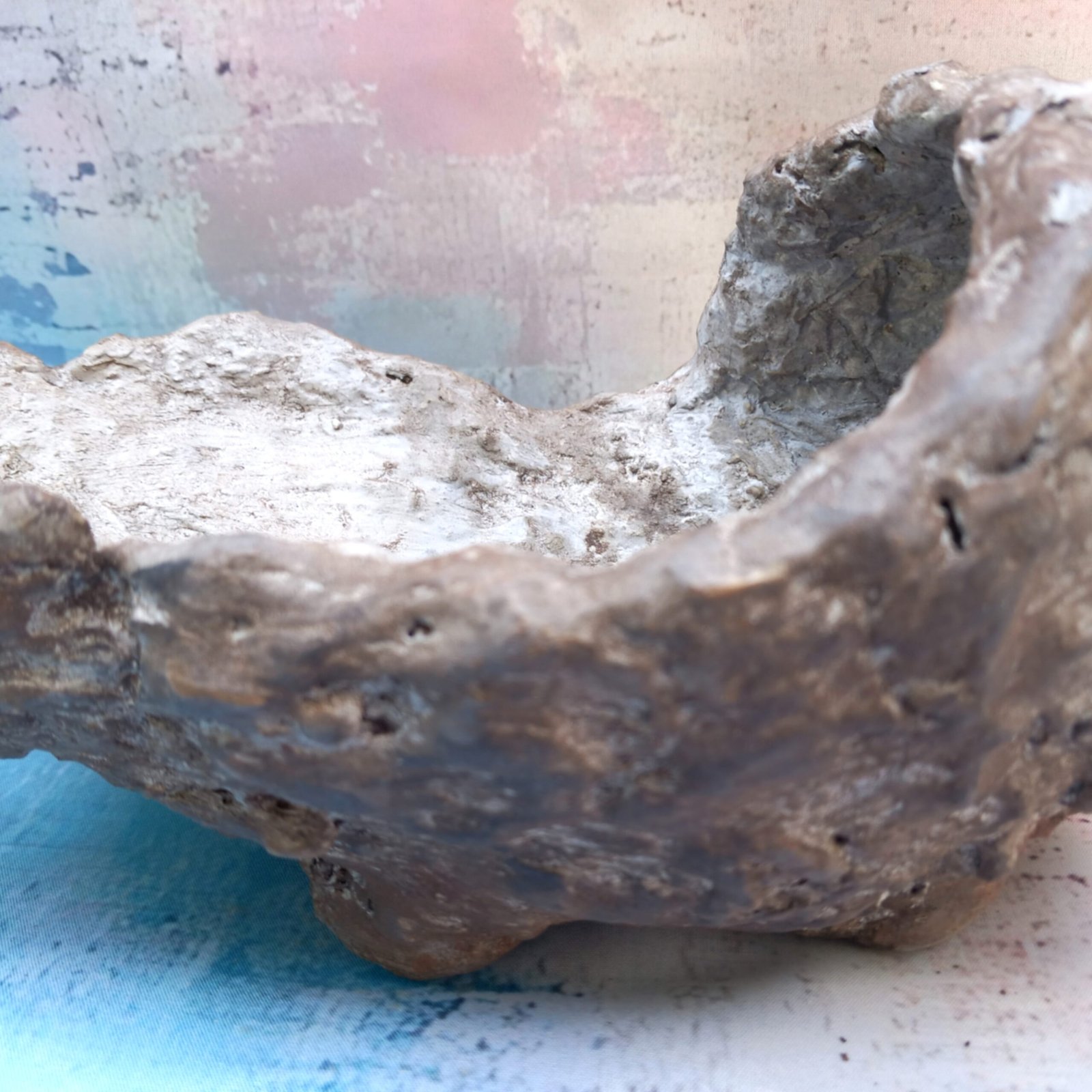 un pot artisanal pour Bonsaï , entièrement réalisé et peint à la main en béton fibré. Sa forme originale et son aspect de rocher en font un pot vraiment unique.