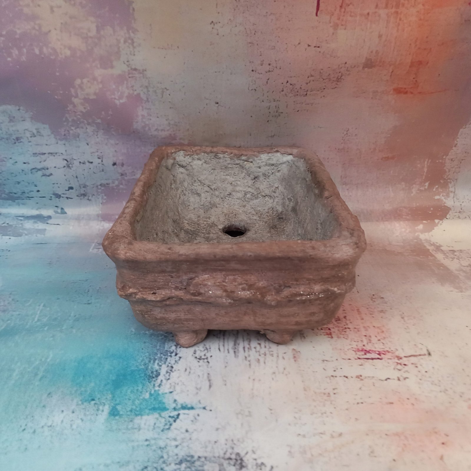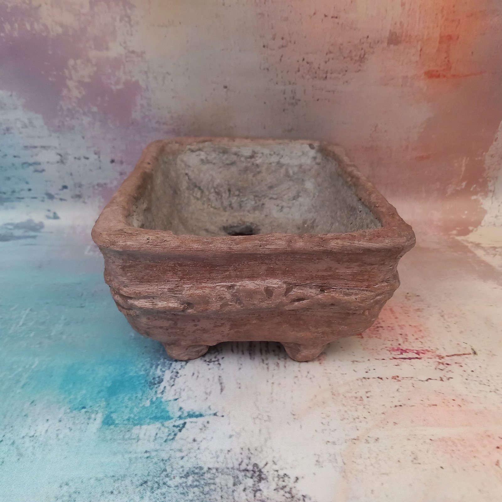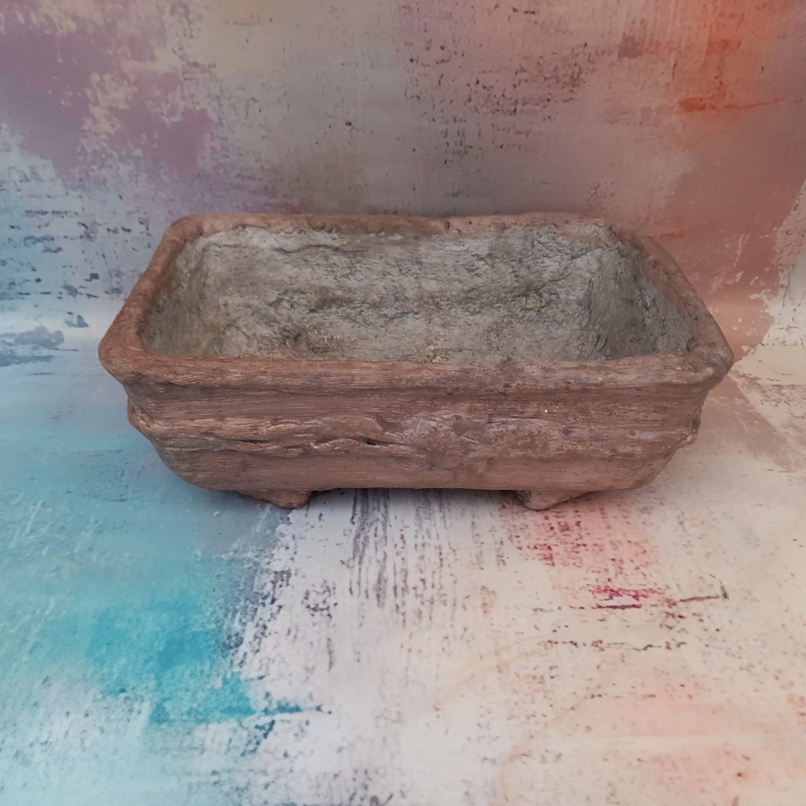 Un pot à Bonsaï rectangle réalisé et peint à la main.