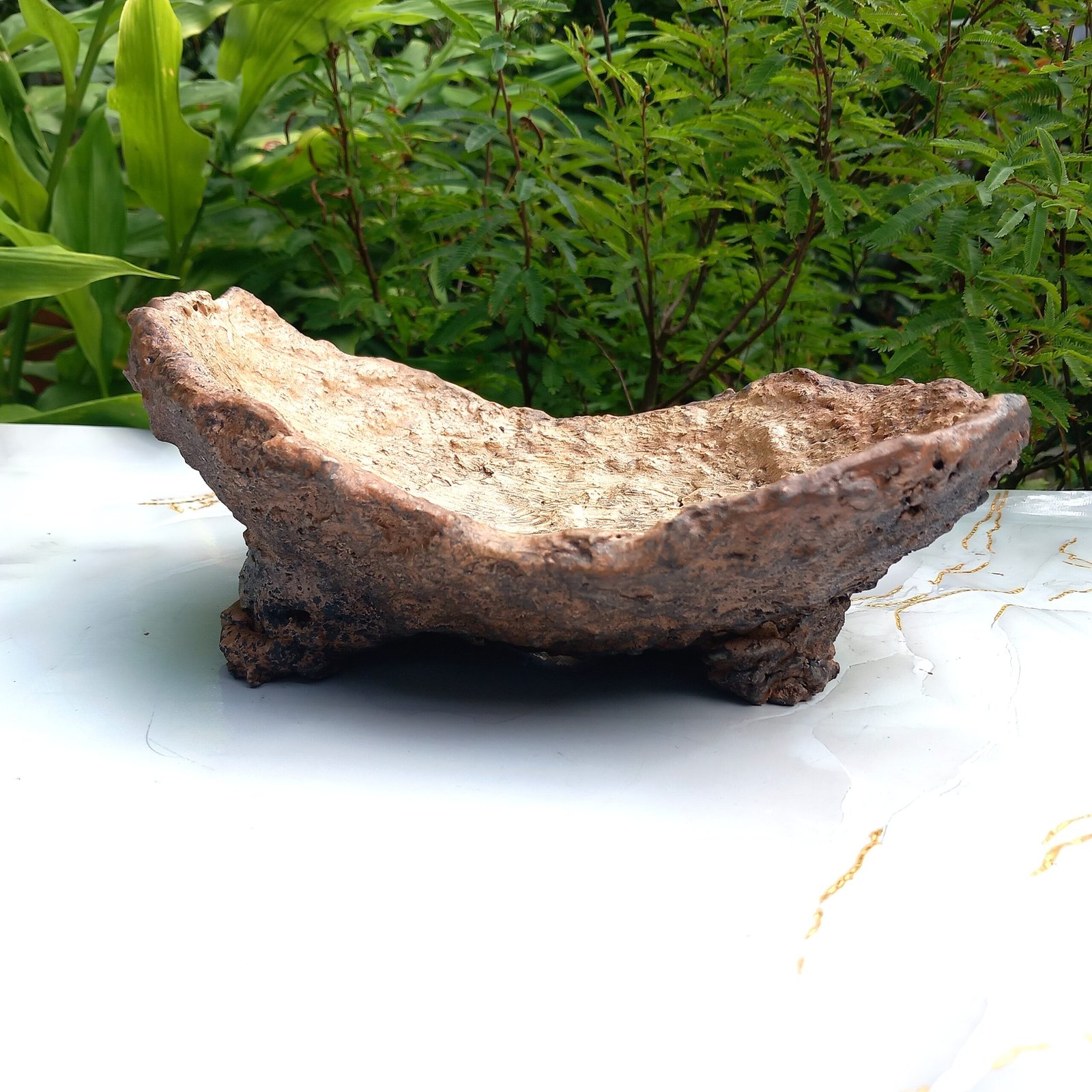 Sa forme allongée et irrégulière, ses couleurs de rocher , en font un contenant original et très naturel pour votre arbre.