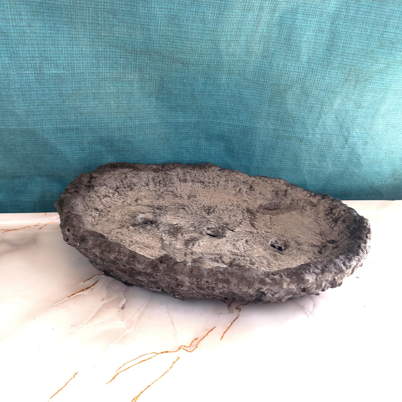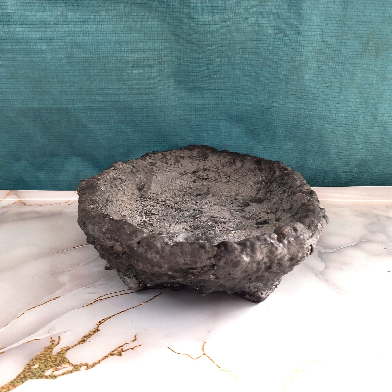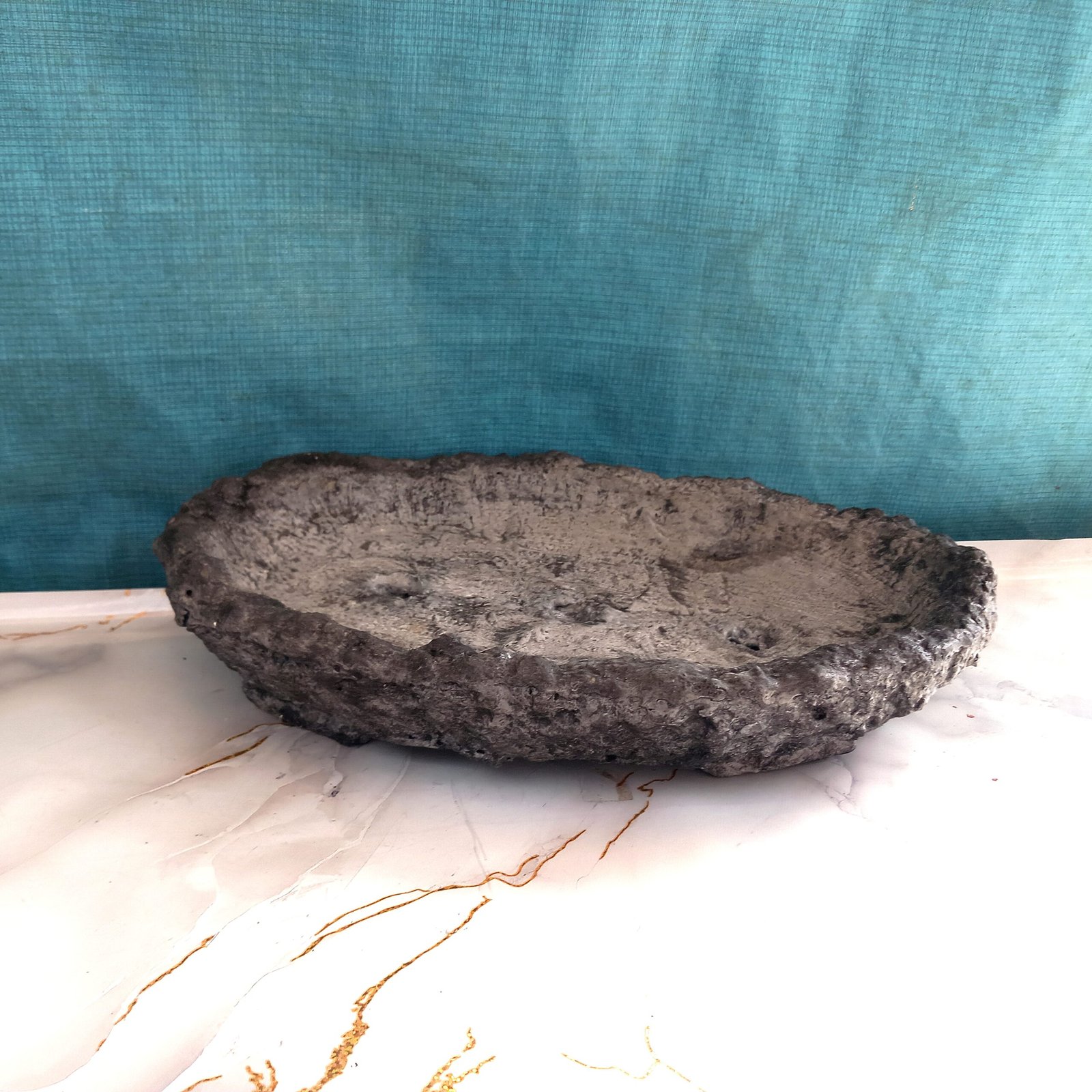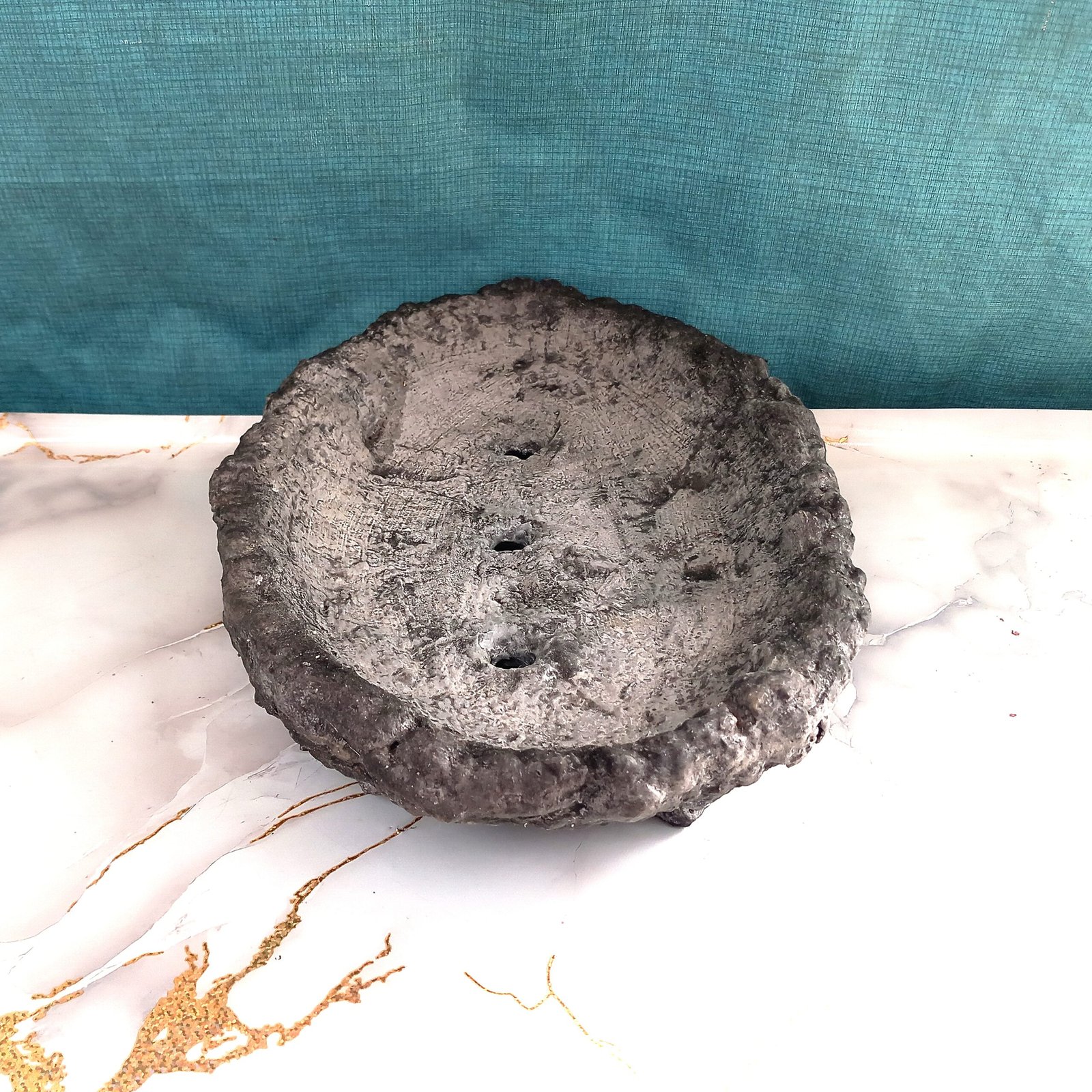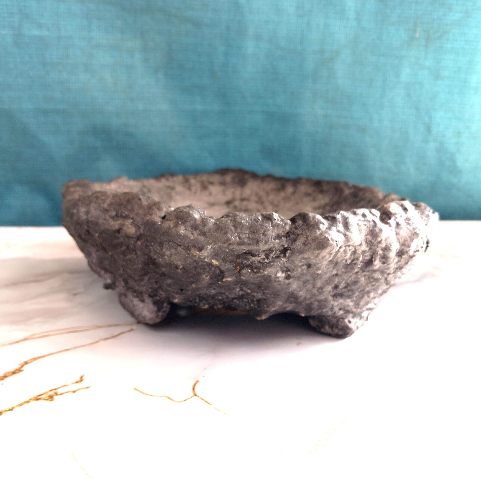 Sa forme ovale et basse , ses contours irréguliers, sa couleur et sa texture de rocher sont parfaits pour accueillir un Bonsaï ou une forêt de petits arbres.